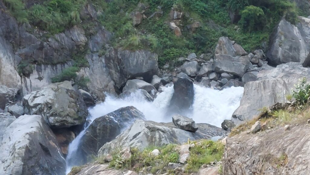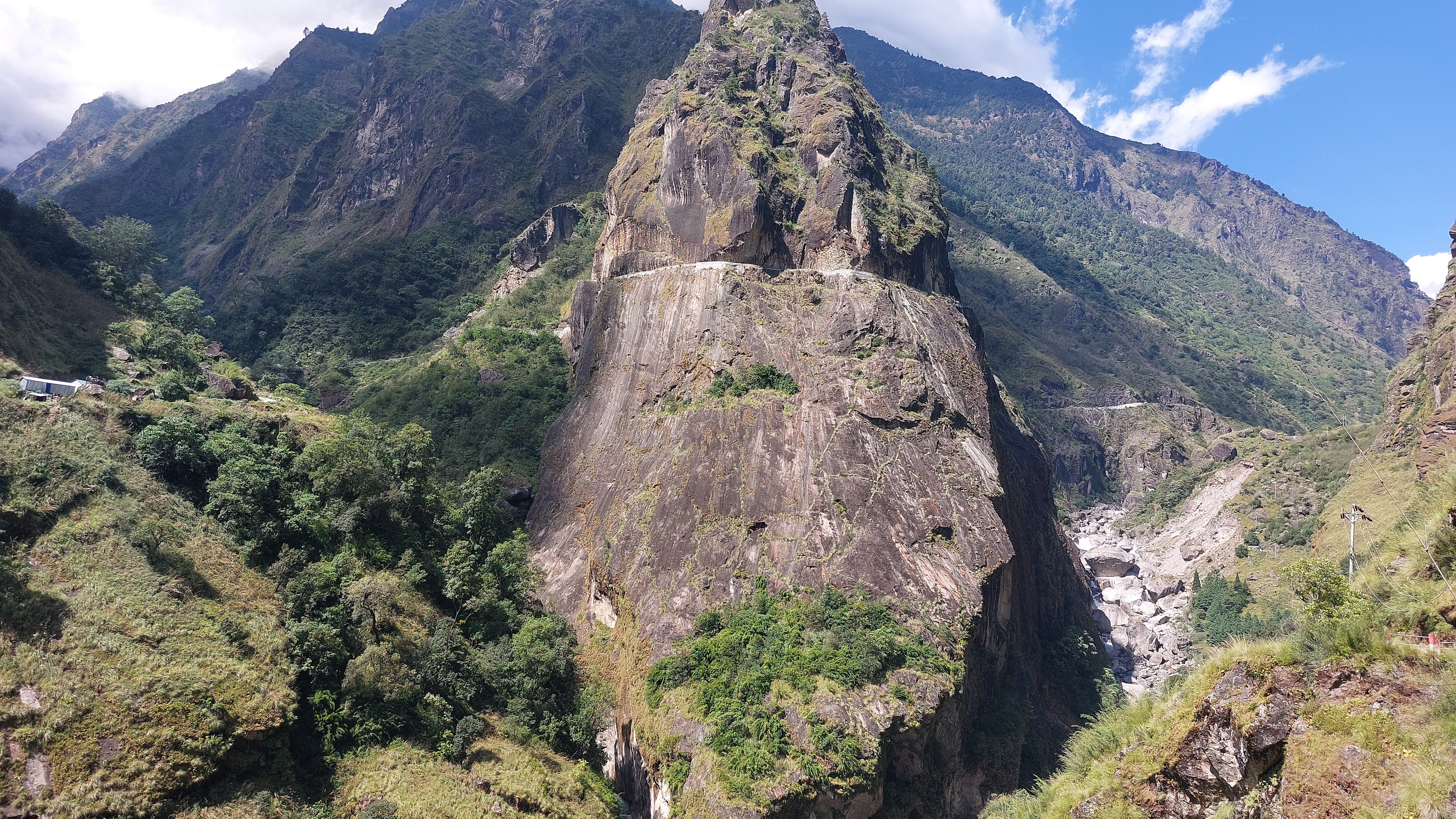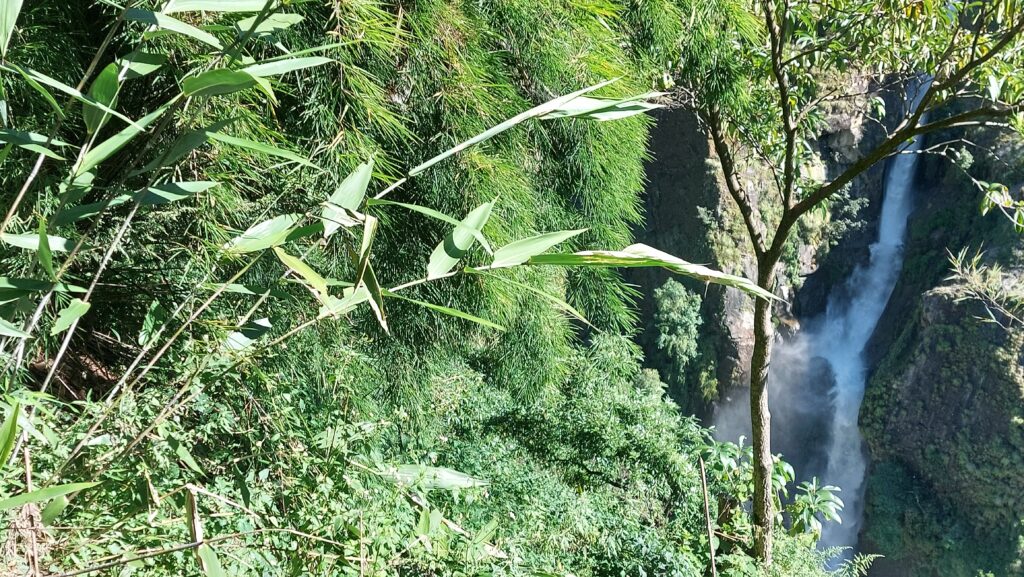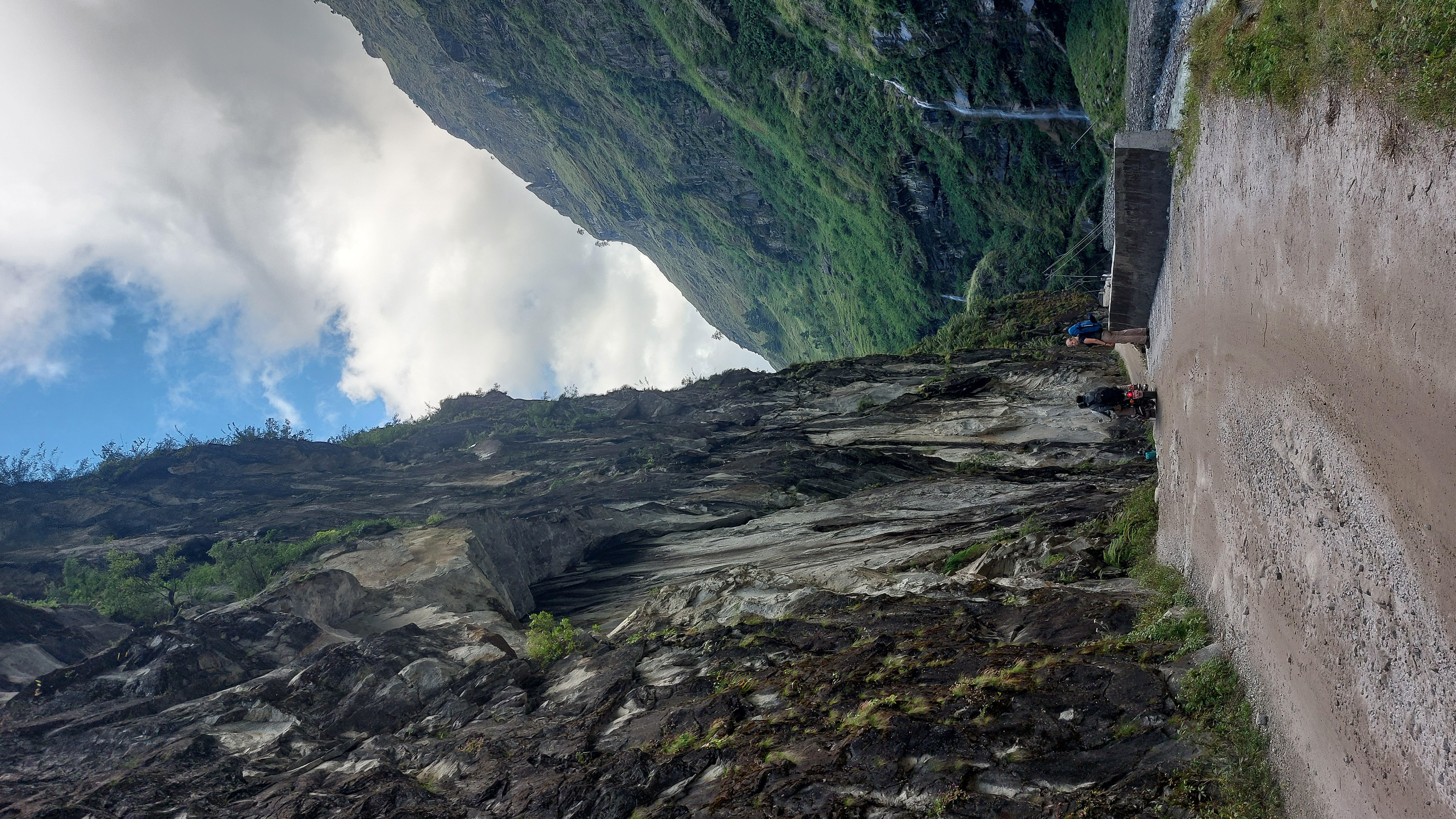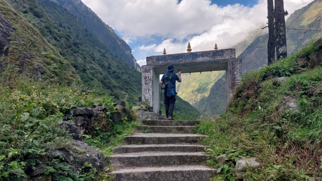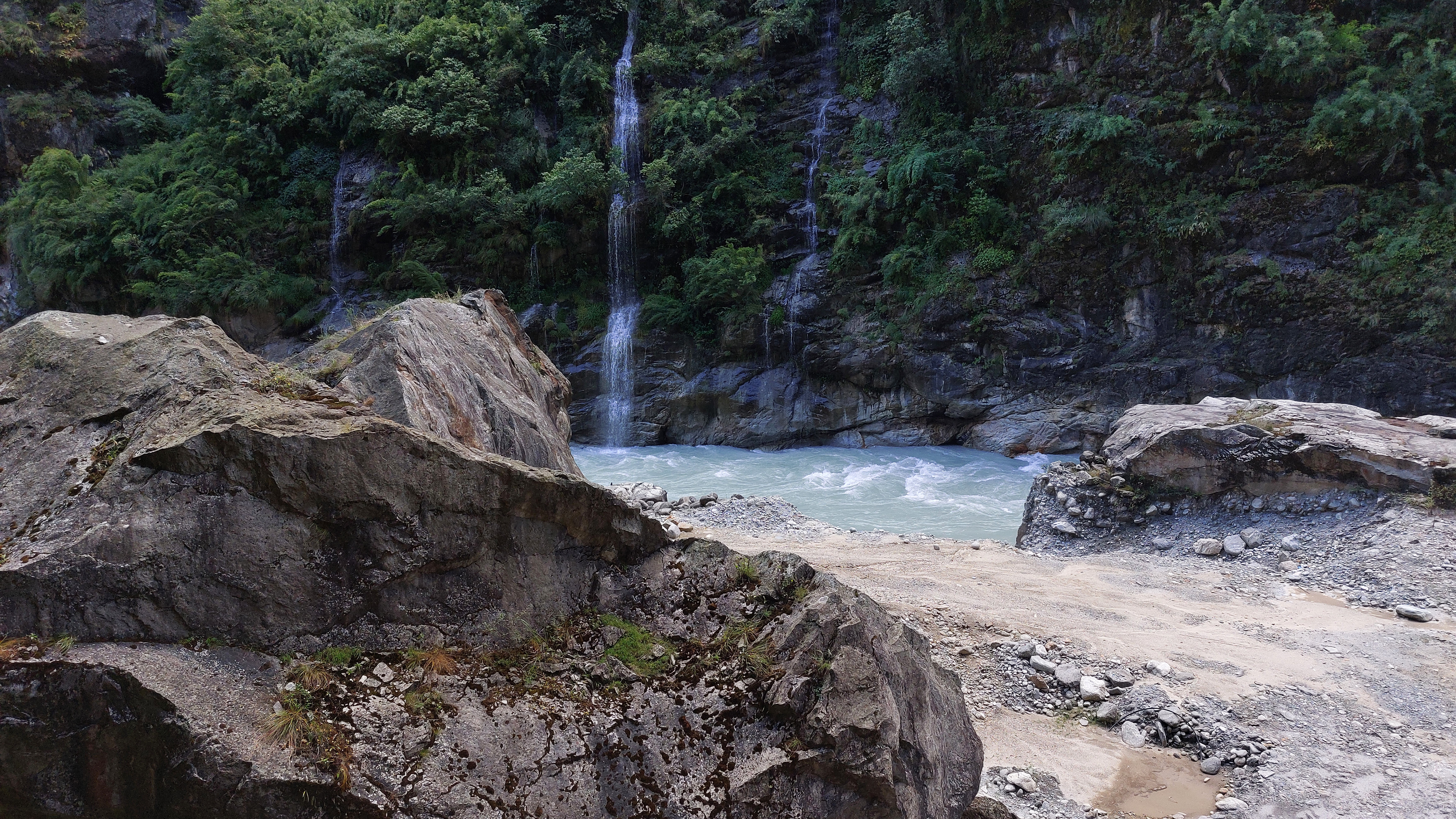 Najpierw nasza trasa prowadziła w dół, żeby standardowo za chwilę odbić ostro w górę. To urok szlaku NATT, który jest dużo dłuższy i trudniejszy niż chodzenie drogą, ale wart jest każdej kropli potu i każdego wysiłku. Są chwile, kiedy drogi te się łączą, ale najpiękniejsze odcinki, to właśnie te, gdzie albo idzie się drogami wyglądającymi jak ścieżki wydeptane przez zwierzęta, albo gdzie brnie się przez strumienie, skacze po pniach udających mostki, przemyka pod wiszącymi skałami, albo wspina po starych kamiennych schodach wzdłuż których płynie wodospad.