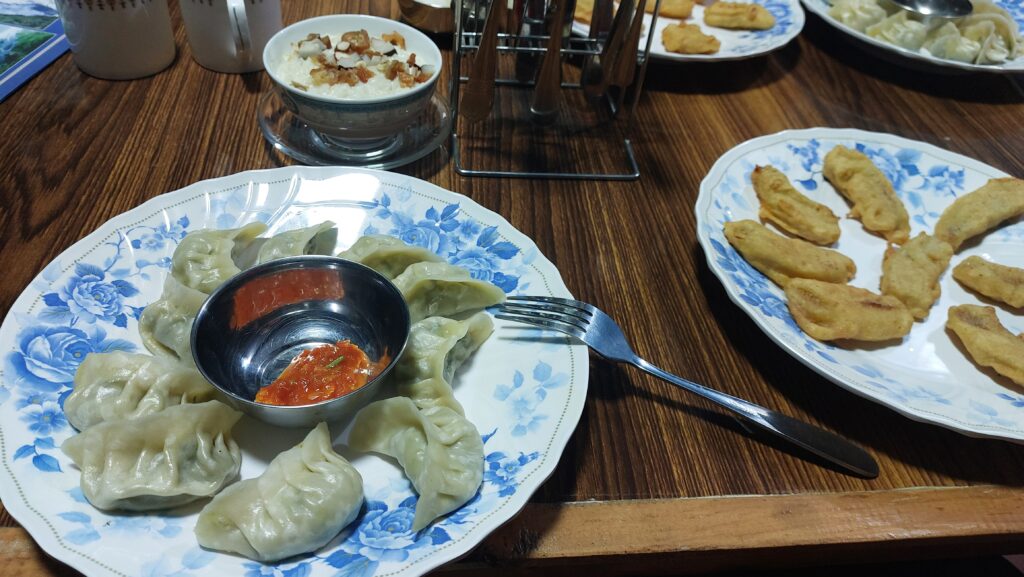Umęczeni już tego dnia nieziemsko wreszcie dowlekliśmy się do Dharapani, która to mieścina jest dość rozległa. I oczywiście okazało się, że Bijay’a prowadzi nas na sam jej koniec, do teahouse’u prowadzonego przez jego siostrę. Ale warto było wlec się te kolejne kilkaset metrów, bo warunki w domkach, które dostaliśmy bardzo przyjemne, a obiad, który nam zaserwowała gospodyni był po prostu znakomity.